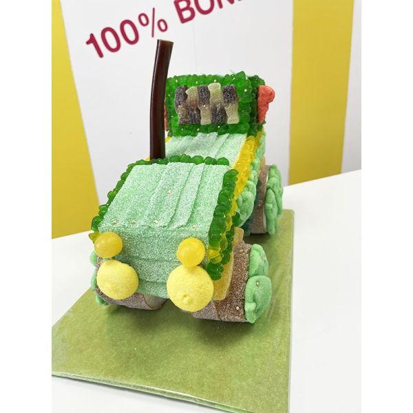 Ingrédients : Sirop de glucose, sirop de glucose de blé, sirop de fructose, sucre, sirop de sucre inverti, eau, gélatine, pectine, dextrose, gomme base, amidon modifié de pomme de terre, amidon de maïs, huile végétale, maltodextrine, agent d'enrobage, cire de carnauba, cire d'abeille, acidifiants, E270, E296, E330, E334, correcteur d'acidité, E325, malate de sodium, humectant, acide citrique, acide malique, arômes, colorants, carmin, bleu patenté V, lutéine, E100, E120, E133, E150d, E161b, présence éventuelles de traces de lait, concentré de fruits et de plantes, carthame, cassis, carottes, pomme, épinard, ortie, kiwi, caroube, concentré de fruits.