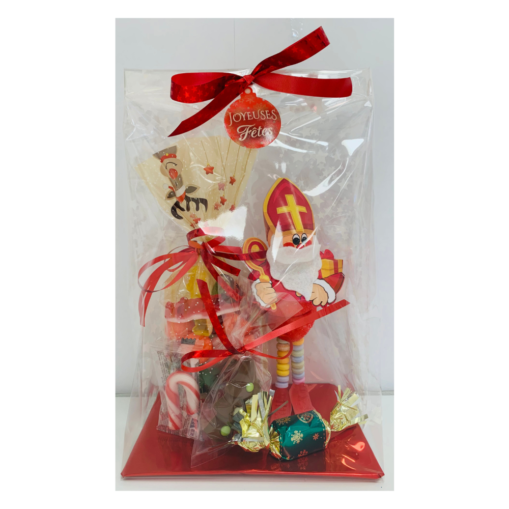 La tête du père Noël est non comestible. Contient des pics en bois, ne convient pas aux enfants de moins de 36 mois.